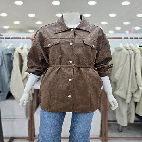 ELLE PARIS 페이크레더 벨티드 자켓