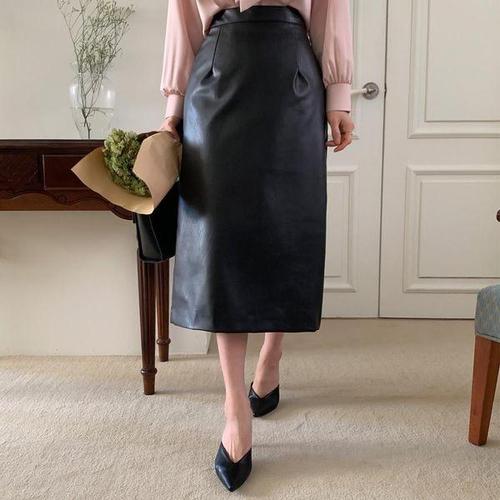 [다잇템]여자 백밴딩 롱 가죽 미니멀리즘 트임 스커트