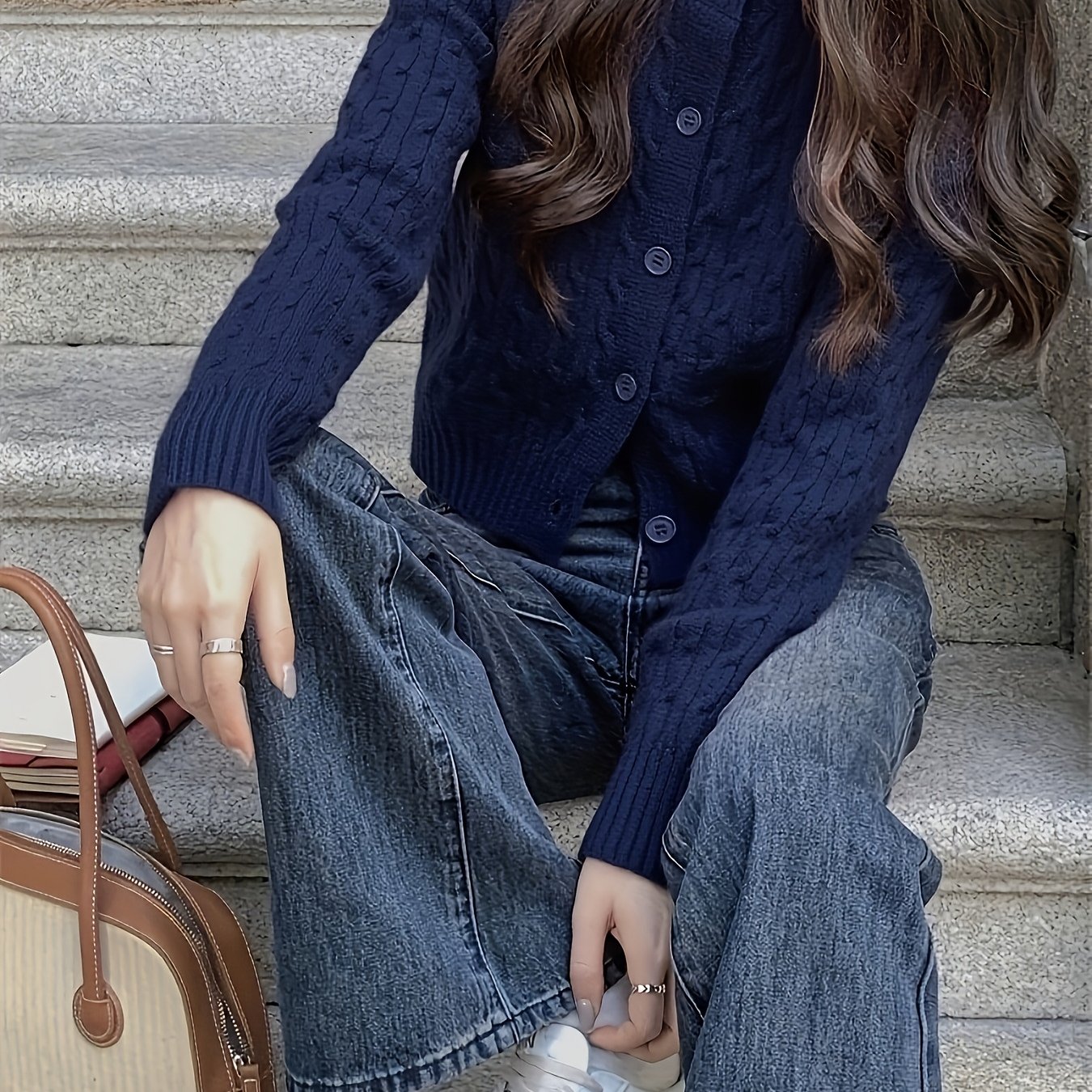 TEMU 여성용 가을/겨울용 숏 카디건 스웨터, 컬리지 스타일 디자인