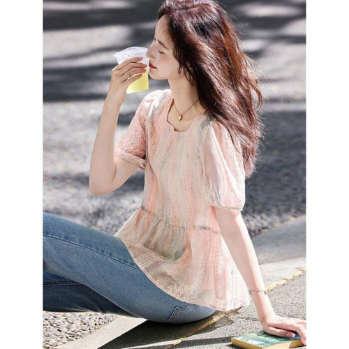 제로투올샵2 / 프렌치 스퀘어넥 레이스 블라우스 핑크레드 S