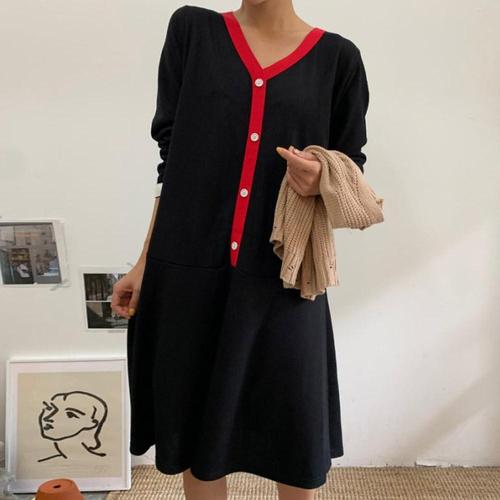 루어스룸 플레인 루즈핏 라운드넥 하객룩 임부복 긴팔 빅사이즈 니트 롱 원피스