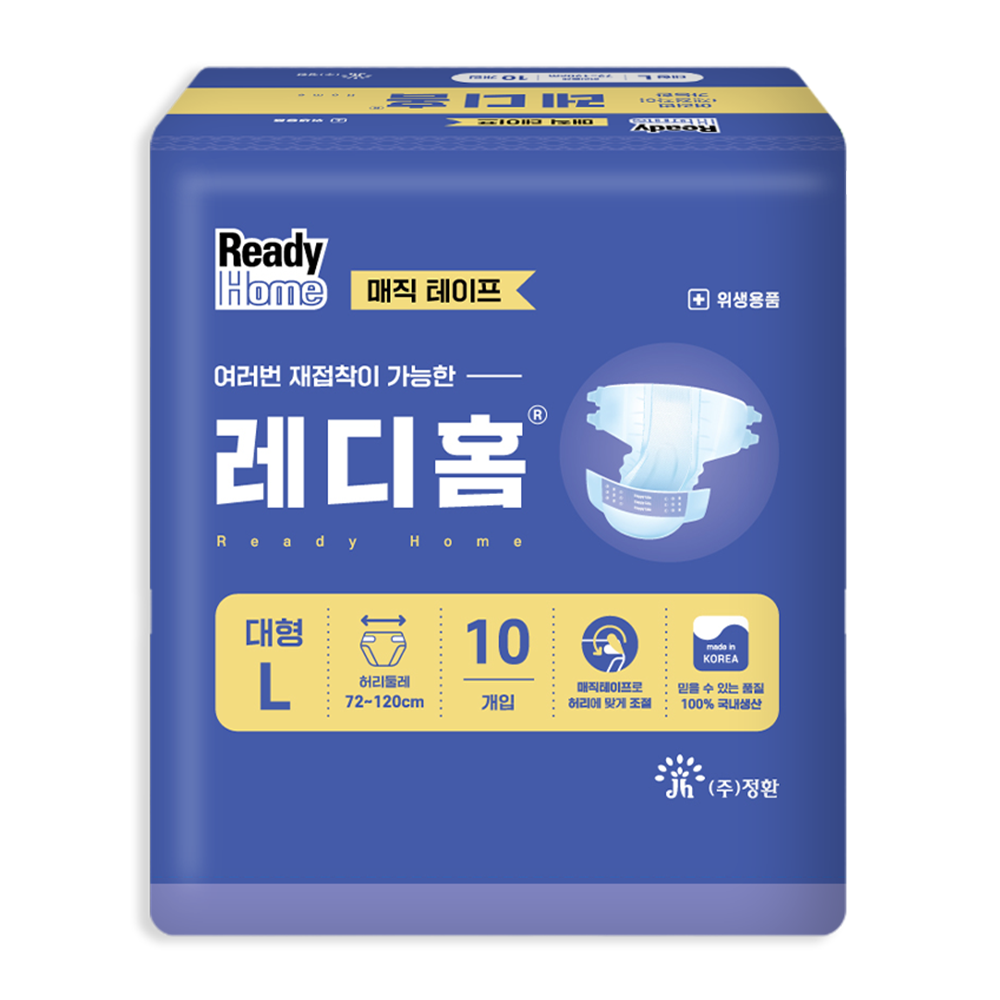 레디홈 성인용기저귀 매직 테이프 대형 어르신 와상환자용 1박스 10매 x 8개
