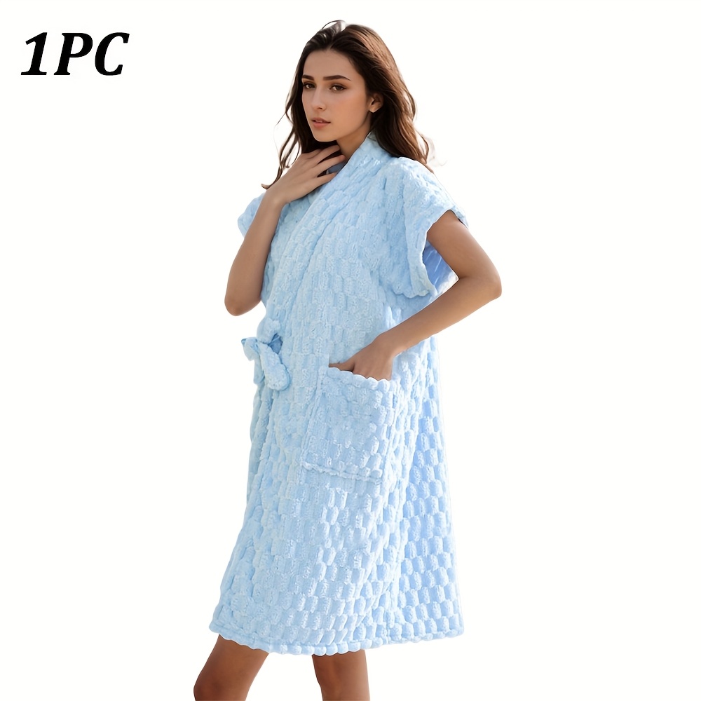 TEMU 여성용 럭셔리 목욕 가운 & 로브 1개 - 부드러운 극세사 목욕 드레스 (우아함/ - 스파, 가정, 여행용 속건성 목욕 가운) - 세탁기 사용 가능, 워시 클로스, 욕실 필수품, 플러시 질감, 스타일리시한 욕실 의류, 내구성 좋은 욕실 의류|샤워가운