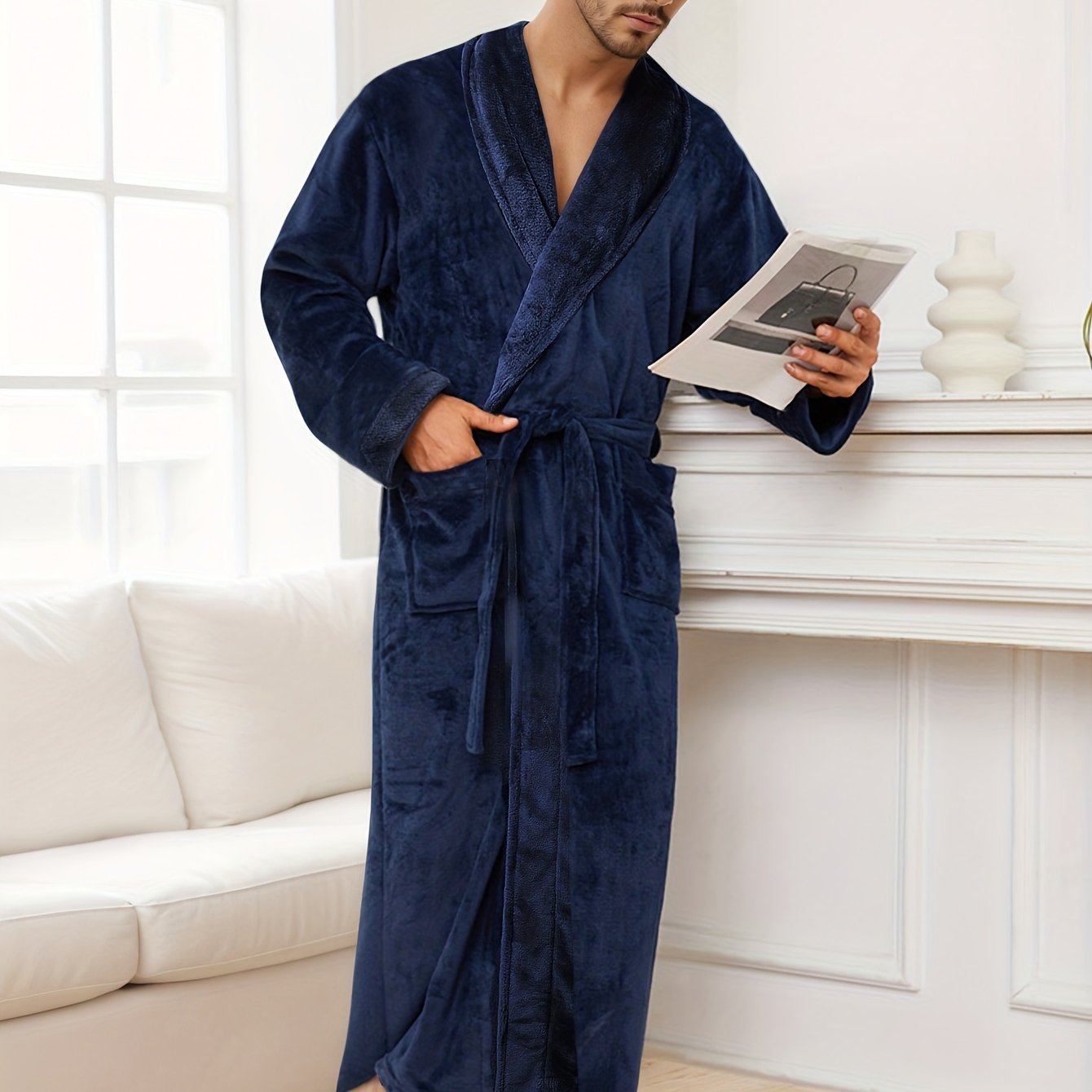 TEMU 남성용 두꺼운 플란넬 로브 - 부드럽고 따뜻한 긴 목욕 가운, V넥, 넉넉한 핏의 수면복, 집, 커플, 여행용 - 남성용 세탁기 사용 가능한 겨울 로브, 집, 포근한 의류, 클래식 디자인, 편안한 착용감, 홈 라운지웨어, 클래식 스타일, 커플잠옷, 목욕가운, 남자 홈 가운, 남자 유카타, 샤워로브, 남자 샤워가운