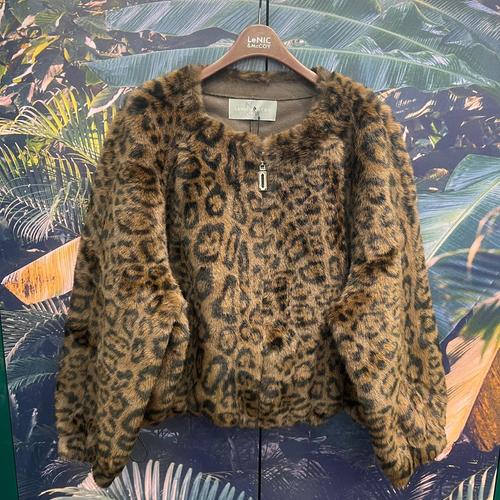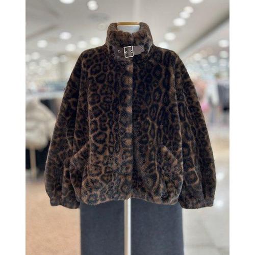 스테파니 DP01 레오파드 노카라 퍼 자켓 A24JK4429
