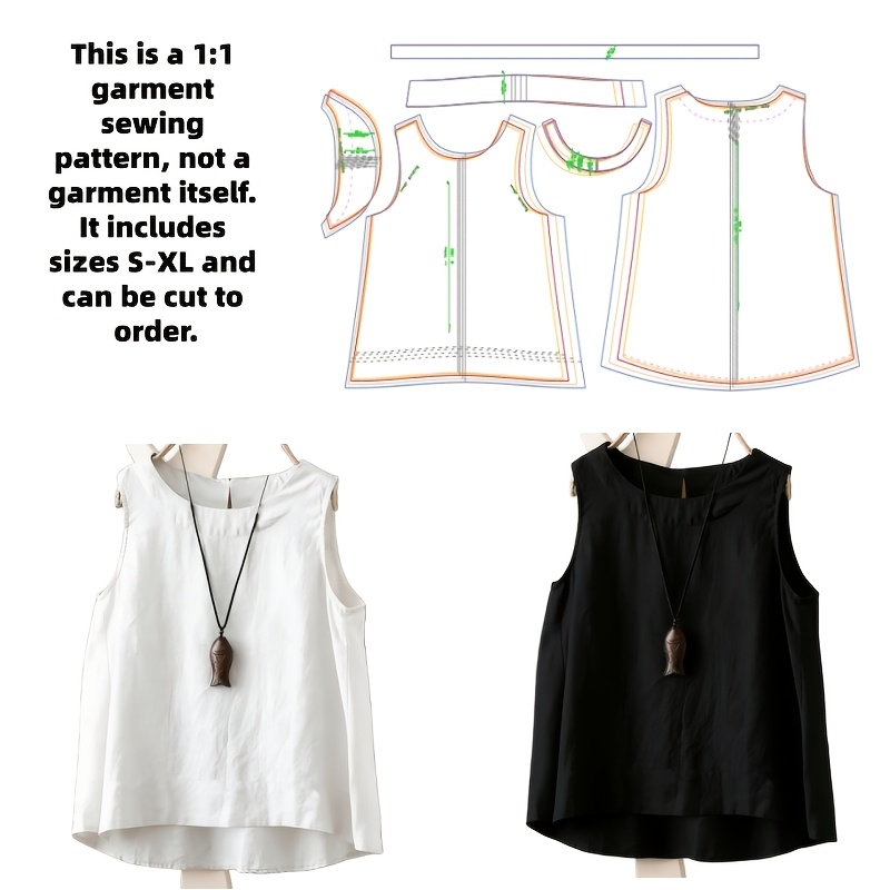 TEMU 여성용 스타일리시 민소매 탑 재단 패턴 (이것은 재단용 패턴이며 완성된 의류가 아닙니다). 당신이 좋아하는 원단으로 옷을 디자인하여 독특한 개인적인 매력을 연출할 수 있는 패턴입니다. 1:1 스케일의 의류 패턴이며, [여기]에서 구매할 수 있습니다.