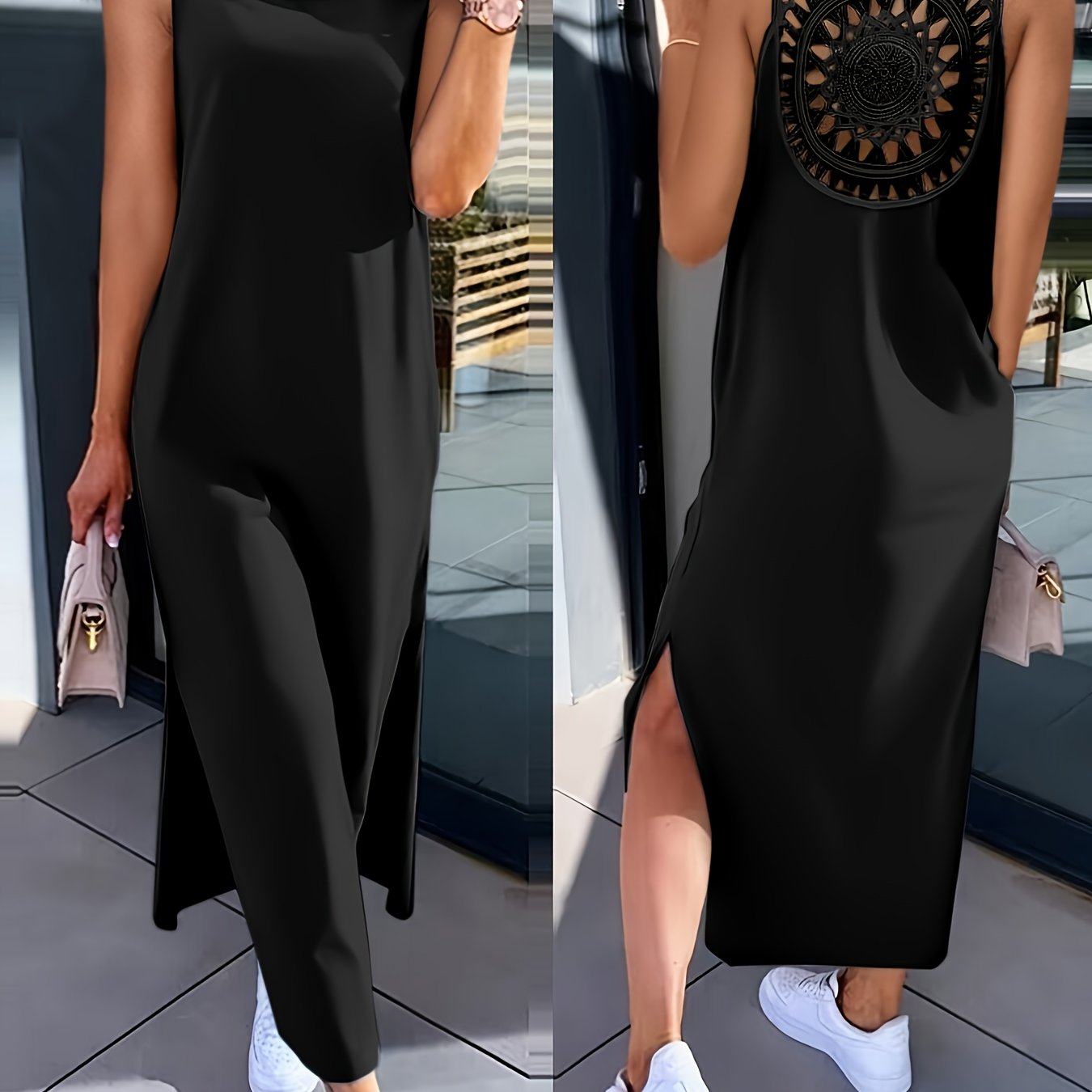 TEMU 새로운 여름 민소매 탑, 레이스 트림과 홀로우 백, 여성용 단색 드레스