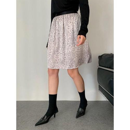 [바스카라]레오파드 믹스 미디 스커트