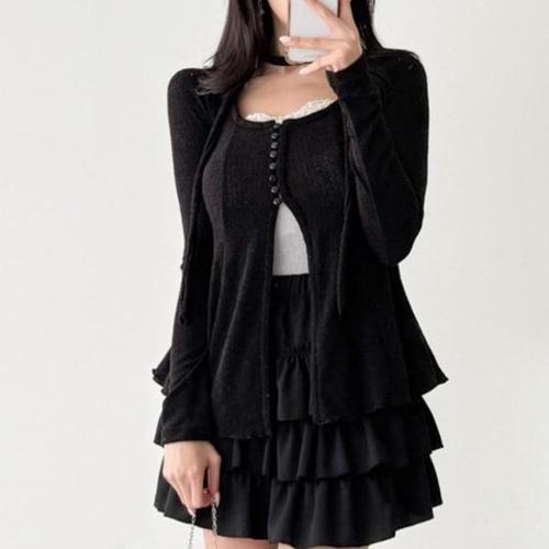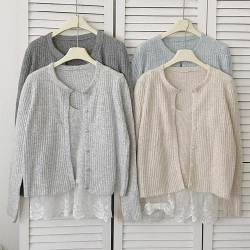 [다잇템]여성 울 카디건 나시와 골지 코디 레이스 세트