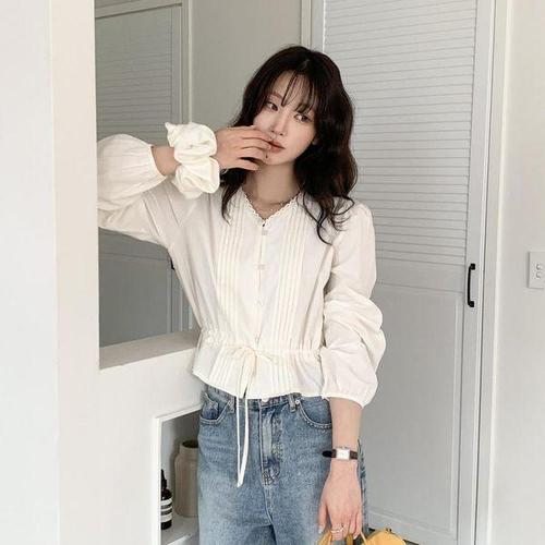 [다잇템]여자 나들이 여성스러운 V넥 레이스 블라우스