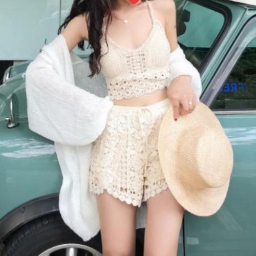 [셀러허브_여성트랜드패션]여성 레이스 여행룩 셋업 SS 크로셰 세트