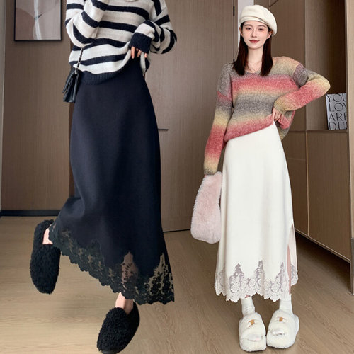 [유니제이] [SET]레이스 니트+롱 스커트