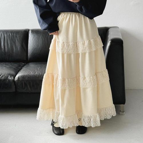 [막스까르띠지오]벨루아 레이스 밴딩 롱스커트