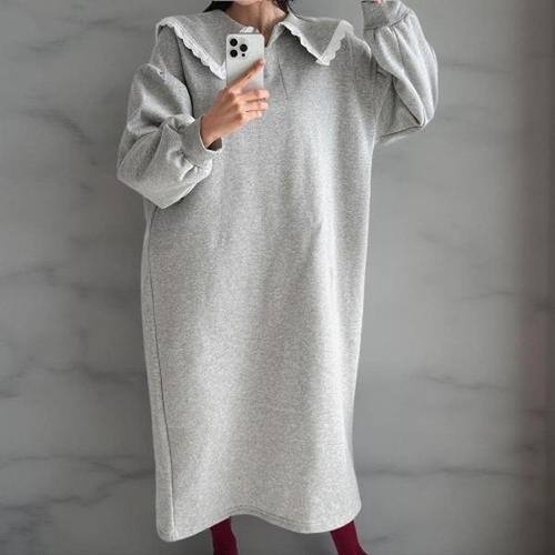 [다잇템][다잇템] 여성 레이스 소매 보온 벌룬 박스 세일러넥 롱드레스_24155534_588872