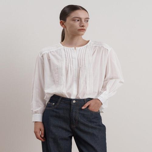 레이스 차이나카라 코튼 페이크 이너 넥 블라우스