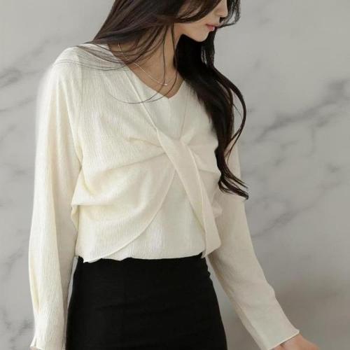 [다잇템]여자 면원단 프릴 레이스 민무늬 블라우스