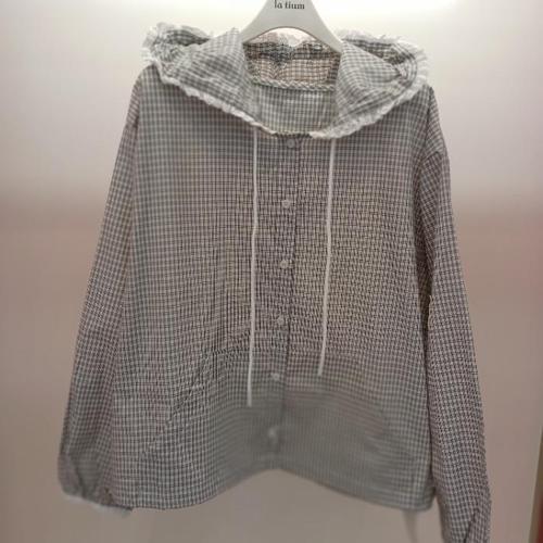 Latium HC06 팔뚝품편한 체크레이스 주머니 점퍼형 후드 긴팔 면 블라우스