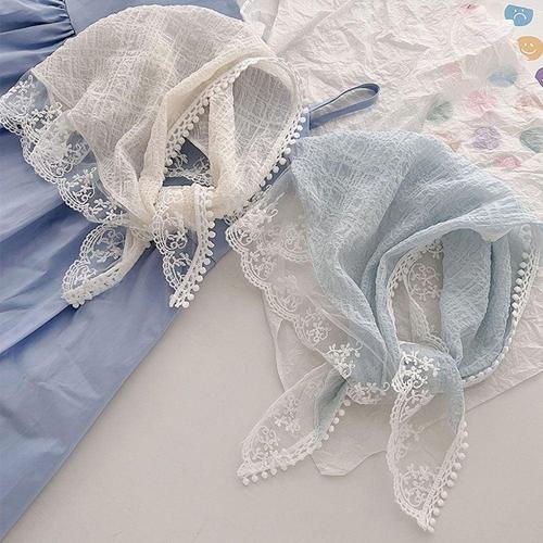 여성 삼각꽃 레이스 린넨 스카프 머플러 봄 미니 목 여름