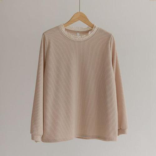 아트박스/라이니 레이스 약기모 골지 일체형 긴팔티 to-2597c