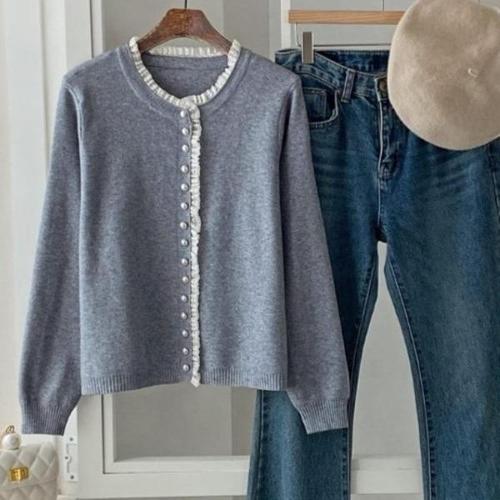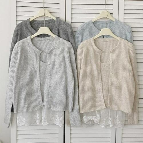 해피유통여성 봄가을 레이스 밑단 니트 가디건 귀여운 패셔너블 디자인 XG20