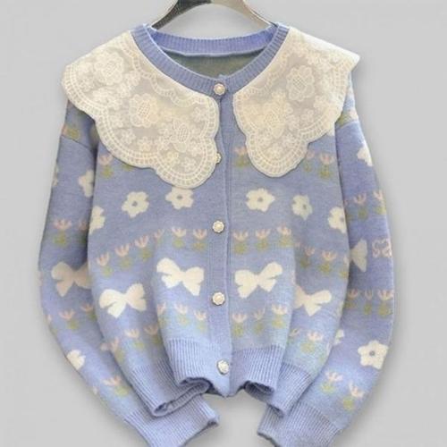 [다잇템]여성 울 스웨터 리본 귀여운 레이스 가디건
