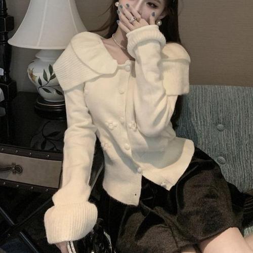 유니픽 여성 가을겨울 따뜻한 니트 가디건 레이스 네크라인 버튼 디자인 루즈핏ddn