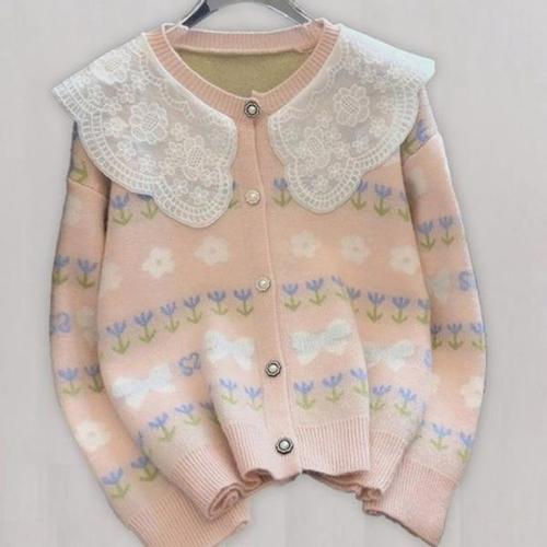 [엄지척]니트 긴팔 핑크 레이스 가디건 플라워 가을 봄_19804772_667501