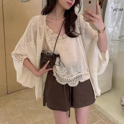 [옷자락]여자 데이트룩 레이스 자수 나시 가디건 세트