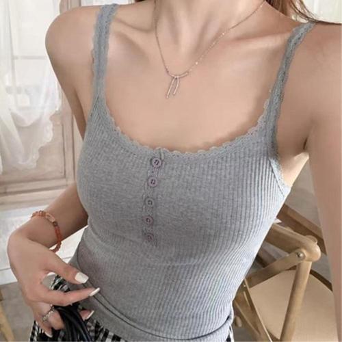 여성 버튼 골지 클래식 캡내장 레이스 나시티