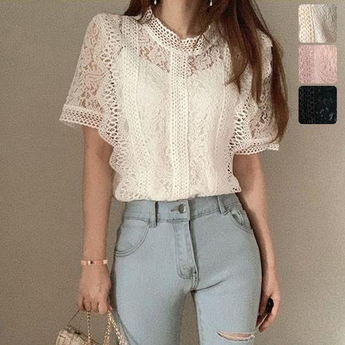 [키첼]어썸디 레이스 반팔 블라우스