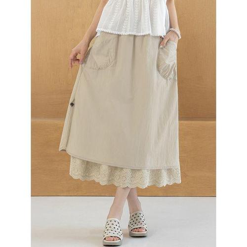 [옷자락]여자 빅사이즈 레이스 캉캉치마 임부복 밴딩 롱스커트