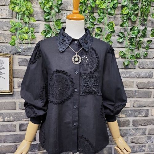 퐁당 / 레이스 펀칭 카라 입체 자수 셔츠 블라우스