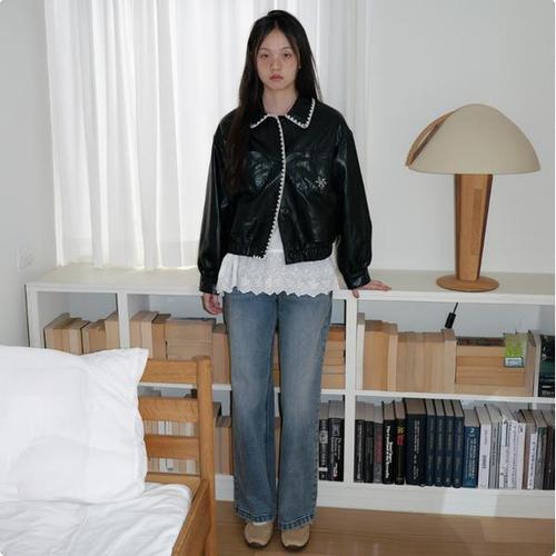 [시크블랙]키론티 벨벳 레이스 펀칭 크롭 블라우스