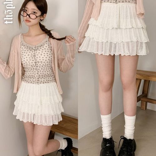 더핑크 / 랑비 펀칭 레이스 캉캉 플레어 미니 스커트