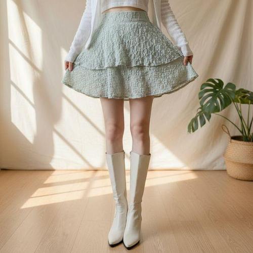 [옷자락]여성용 봄 레이스 캉캉 플레어 미니 스커트