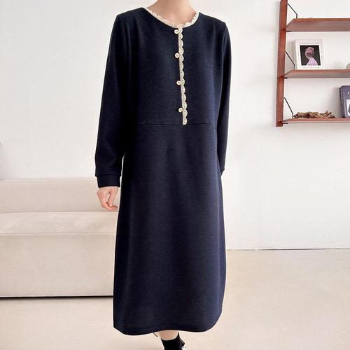 [옷자락] 여성 레이스 버튼 겨울 하객용 빅사이즈 기모 롱 원피스