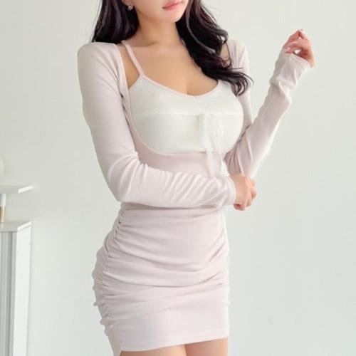 [옷자락]여성 레이스 끈 나시 미니 원피스 레이어드 스타일