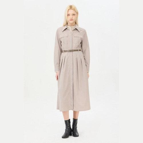[케네스 레이디]오픈카라 셔츠 레이어드 벨티드 원피스 (EWOPOJ07)