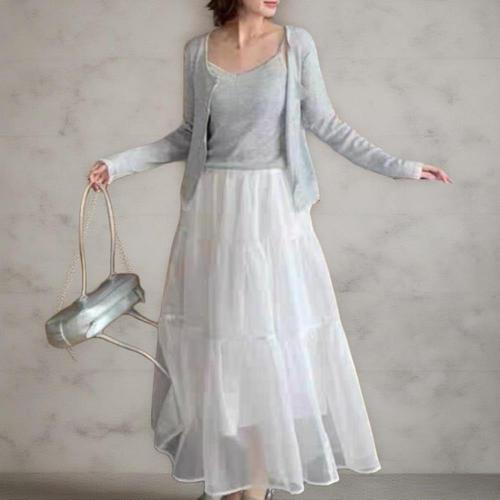 [옷자락]여성 쉬폰 레이어드 브이넥 나시 가디건 세트