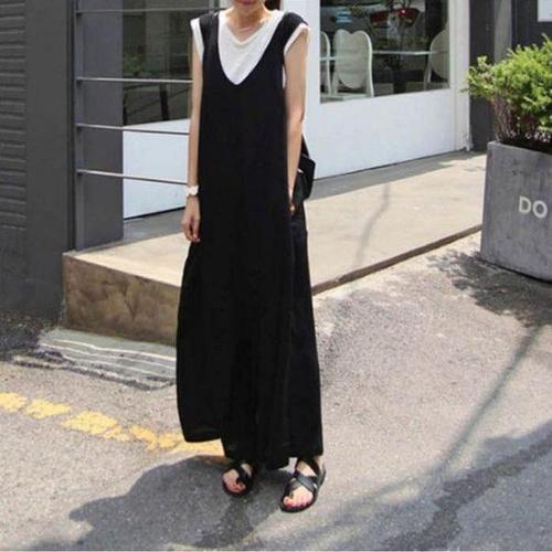 [셀러허브_여성트랜드패션]여자 루즈핏 민소매 점프수트 브이넥 편한 레이어드