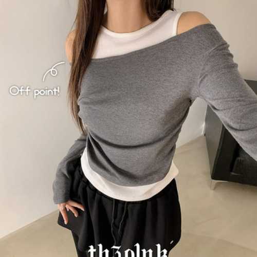 더핑크 / 러잔 슬림핏 셔링 트임 나시 레이어드 일체형 긴팔티