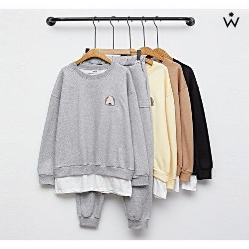 [위시드]기모 에이 레이어드 맨투맨 조거 팬츠 셋업 (WIADOP022)