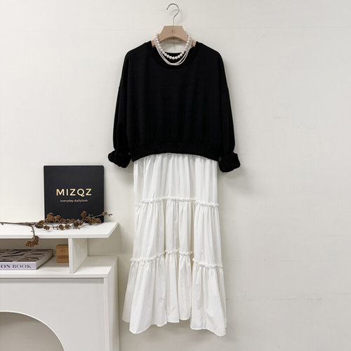 미즈큐즈 / 맨투맨 레이어드 루즈핏 캉캉 롱원피스 2컬러