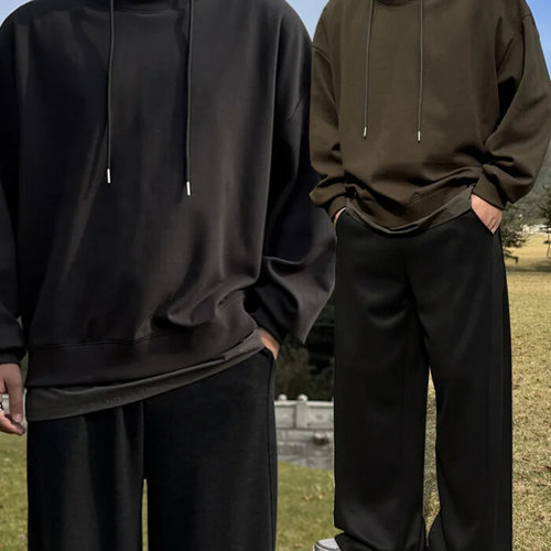 [옷자락]남성 스트릿 뒤쪽 버클 레이어드 퍼프 피그먼트 맨투맨