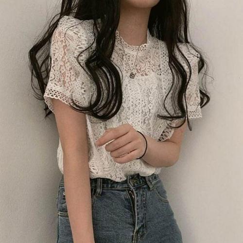 [엄지척]여성 이너 레이어드 하프넥 시스루 레이스 블라우스_19652350_667501