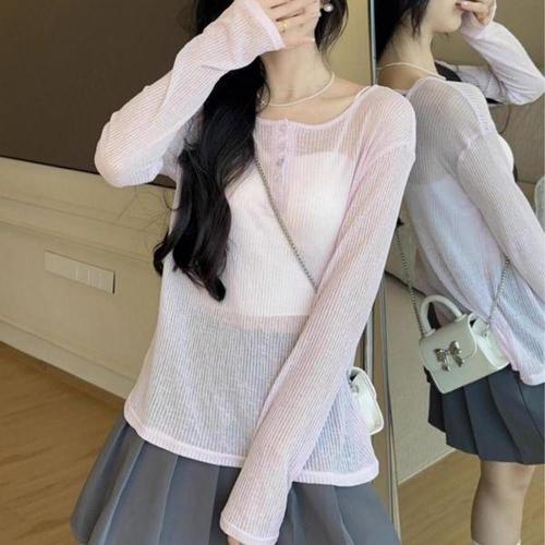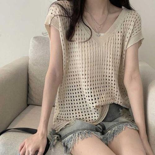 [엄지척]여자 시스루 펀칭 여름 반팔 니트웨어 레이어드룩_19680989_667501
