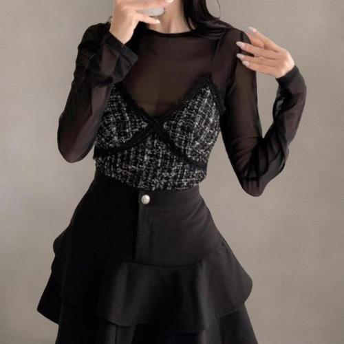 대박난날라리 3897 메쉬스판티 스판 시스루 섹시 여자망사티 이너 레이어드 긴팔 티셔츠 블라우스