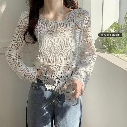 [스타일나]여자 봄 여름 가을 겨울 시스루 스판 레이스 반폴라 블라우스 간절기 레이어드 이너티 속티
