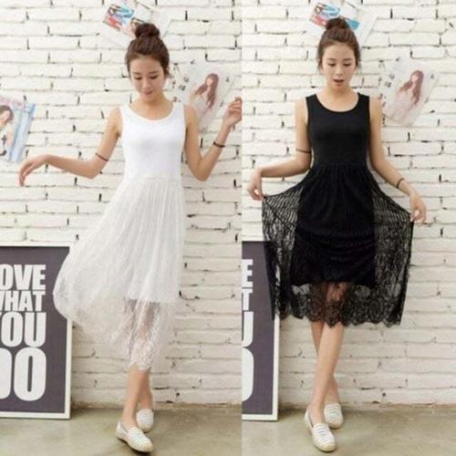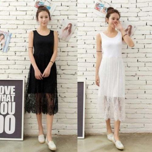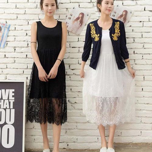 [옷자락] 여성 레이스 레이어드 민소매 롱 원피스