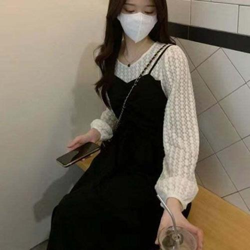 [모노무드]모노무드 은플레이스 원피스 봄가을 스트링 일체형 나시레이어드 레이스 셔